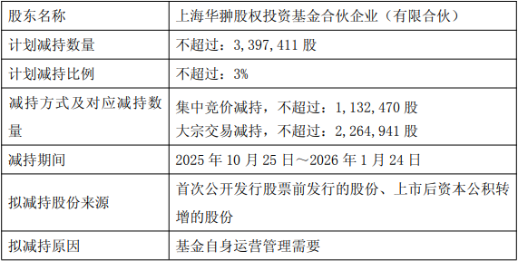 中国经济网络北京,9月25日 *圣太阳(605081.SH)发布了一项计划公告,以减少昨晚股份超过5%的股东股票。由于其自身的运营和资金需求和资金的需求和管理,上海华港股票投资基金合作伙伴关系(有限合伙企业)(因此,从因此被称为“ Huachong Fund”)计划减少对公司共享的持有的不超过3,397,411的股份,该公司通过集中的PAG -BID -BID -BID -BID和BULK -BID -BID -BID -BID -BID -BID -BID -BID和BULLK交易部分。其中,集中式投标的计划减少不超过1,132,470股的计划,NIT的成本不超过公司股票总资本的1%;通过批量交易减少处理不超过2,264,941股的计划,该股票的成本不超过Capita的2%l公司共享。减少期是从扣除计划披露之日起15天后3个月内实施的。在实施过程中,如果公司分配股息,奖金共享,增加资本,新股票或分配分配,则上述股票数量将进行相应调整。公告披露之日,Huachong基金由7,250,000股不可阻挡的公司股票持有(包括:IPO之前获得了5,000,000股;资本储备基金获得了2,250,000股,以增加其资本),该股票提供了Taiyshui总资本的6.4019%。在9月24日计算12.33元的价格下跌时,减少Huachong基金共享的成本不超过418901万元。该公告表明,在与He Wenhui合同的其他纠纷中,Huachong Fund发布了“上海Huachong股票投资的承诺基金合作伙伴关系(有限合作)在2025年4月15日在上海金融法院。编队是 *St Taai的第三大股东。该公司计划筹集7781.1亿元人民币,以补充工程建设中的工作商业资本项目,运营中心的总部和信息建设项目。发行首次公开??报价共享Taih Water的总成本为675.396亿元人民币,承销和赞助成本为523.725亿元。 2022年5月26日,Taih Water年度的年度公告在实施计划之前,基于公司共享资本的总资本,每节实施1元公平分配(包括税款),并使用资本储量增加了0.45零件,并支付了总额为35,145,643。分配后,总资本股为113,247,072股。 Equity注册日期为5月31日2日022,以前的权利(利率)日期是2022年6月1日。
